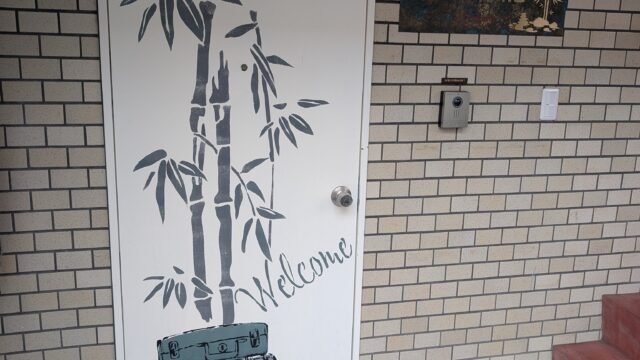 2日目の朝は竹屋旅籠から😤。地番まで一緒のご近所さんのおうちが複数家あるので懸念してたんですが呼び鈴鳴らされたりetcがあったそうで。今回特徴ない建物に1ポイントで扉に絵をmayaさんに描いて頂く。ちゃんと特徴を捉えつつ竹屋旅籠の竹をモチー...