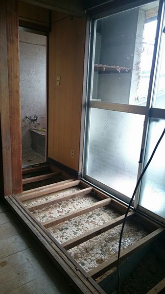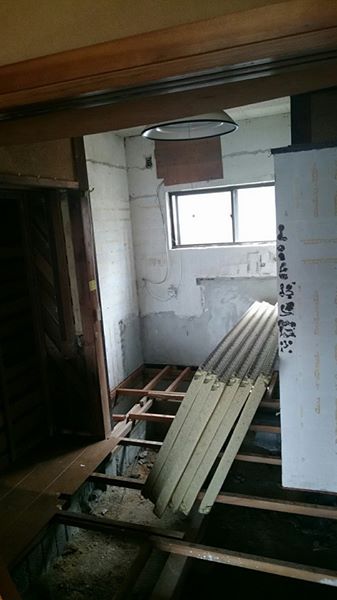 江波南改装記~解体終了~ リフォーム&リノベ X Facebook コピー 2016.10.032023.09.09 本日無事解体終わりました。 見事にスケルトン状態に。 廊下側を見ると過去に前所有者がリフォームしたのがわかります。 壁を見ると「だ、断熱材が入ってない、、、だと?」 とびっくりびっくり状態。 きっと冬場寒かったでしょう。 台所の水回り関係を見るに大引き、根太とも腐ってなく、シロアリの被害もありませんでした。 これから10月末までは外壁を窯業サイディングして後 リノベーション入ります♪