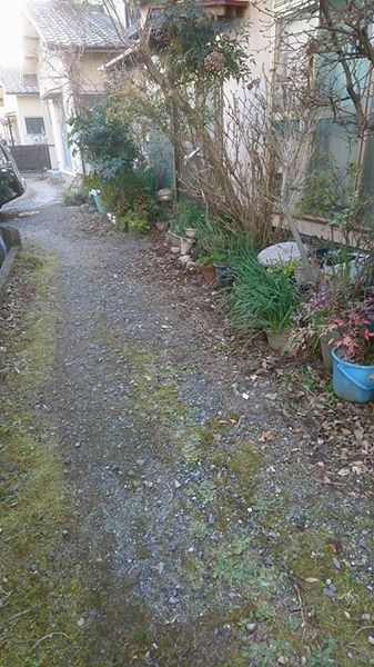 植木やペットボトルが山のよう、2m道路通れるのは間口のみ実質1m、