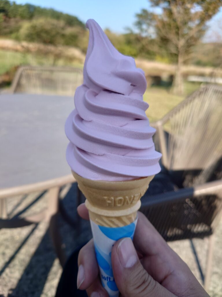 道の駅さんべで石見ワインソフトクリームを。ほんのりワインの香りがして美味。