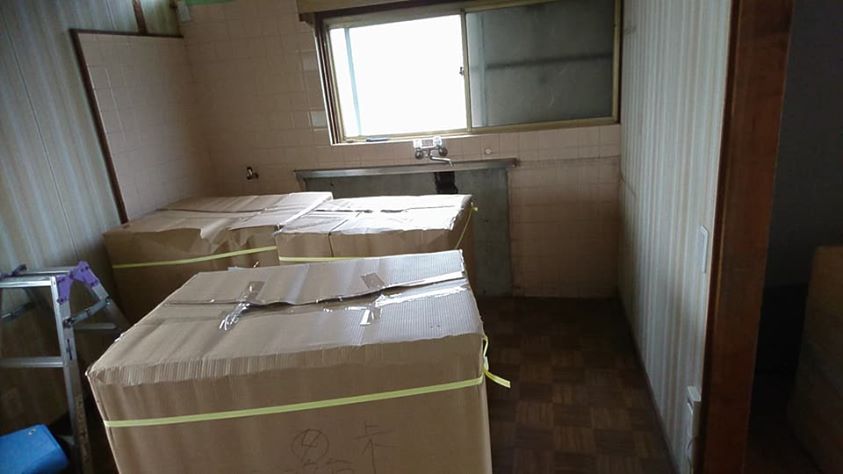 ほぼ完成した屋代ですがシステムキッチンだけ、 都合で今になってしまいました。