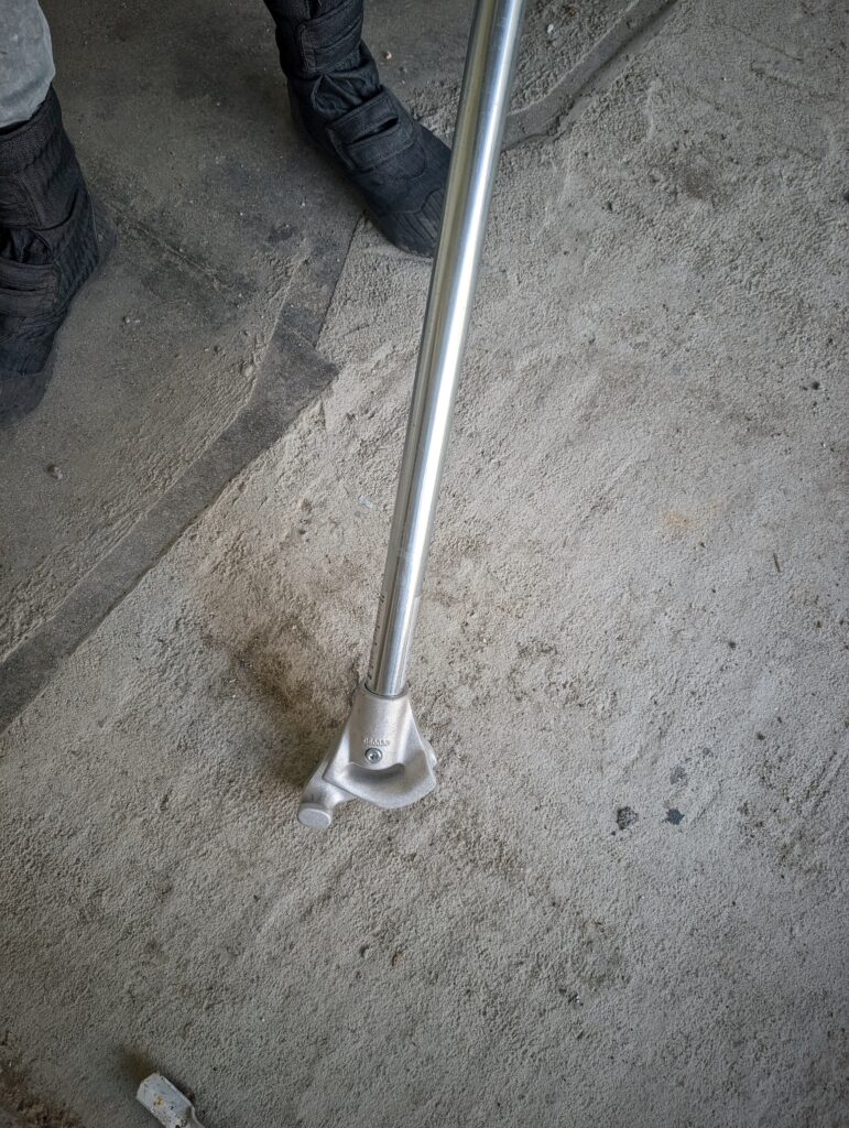 パイプベンダーってのはこれ。この棒状の先に付いてるものでテコの原理利用して曲げる訳です。