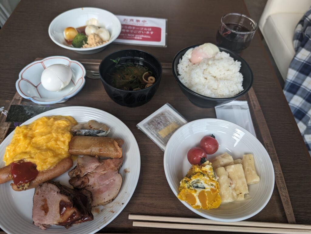 ホテルで早めに起きて朝食を。いやしかしインバウンドやっぱり凄いんですよ外国人家族連れのファミリー層多いのなんのって。7時過ぎに食堂行ったらもう20人位の列wまあ15分ほど待ったら座れましたけども。