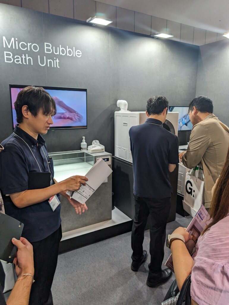 昨年からの流れでAIを絡めたブースが多い印象。自動見積やらは結構精力的にアピール合戦やってましたね。いくつか気になったブース画像を。個人的には内窓関連、断熱性能アップ(節電ガラスコート一般社団法人住宅支援機構)、太陽光の光をそのまま天井に照射するソーラチューブ(大和スレート㈱)、防水施工を超速硬化でやるアクアハクジン木造もオッケー(㈱日本アクア)、石化質コーティングコーティングBOSS(ジェイホークトレーディング㈱)ペットアイテム、自動風呂掃除、アルミに塗って10年以上耐用年数ある塗料(EPMETALVLEANER㈱ジェブ)が気になりました。また装飾系スイッチプレート(AXCIS,INC.)、近未来な、なんというかアラウーノを一回り大きくしたデザインのお風呂とかいいなと感じました。