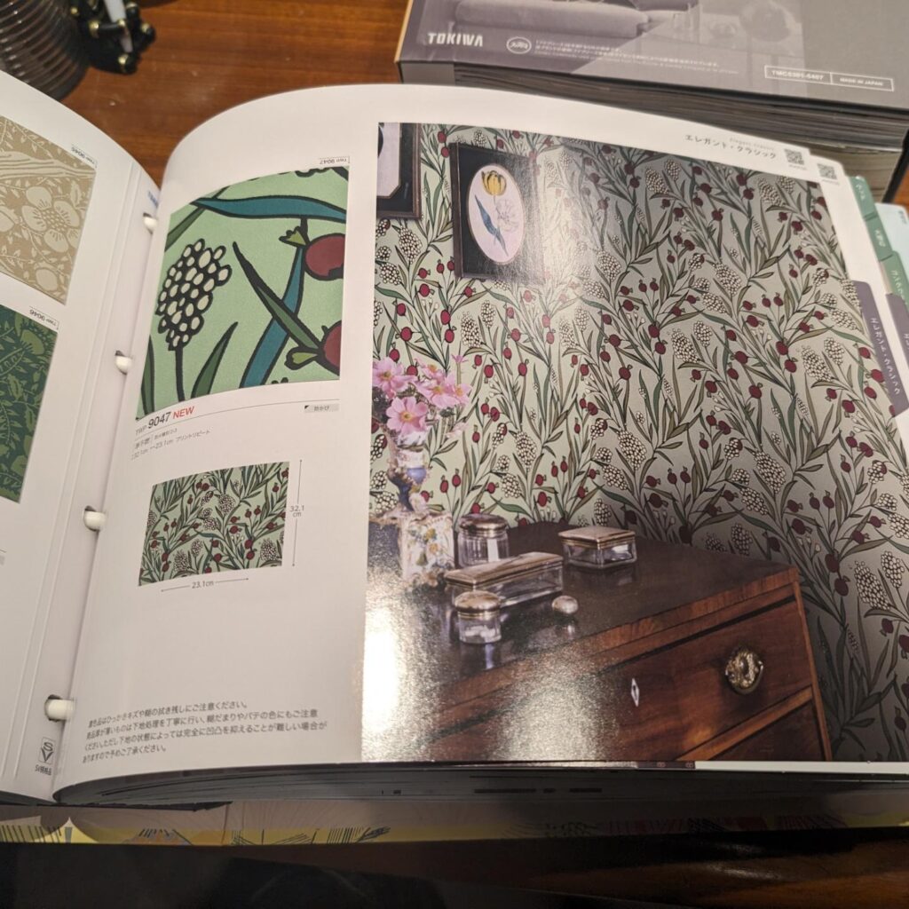 また気づかなかったけどサンゲツ量産クロス新しくなってるのね、急いで取り寄せ。前回取り寄せたパインブルと合わせてデザインを。