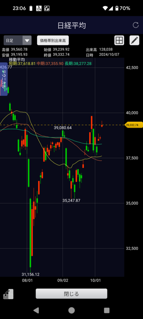 ちなみに6日終わった時点で日経平均はこんな感じ。初日暴落した分は翌日以降戻し。これからに期待でしょうか?