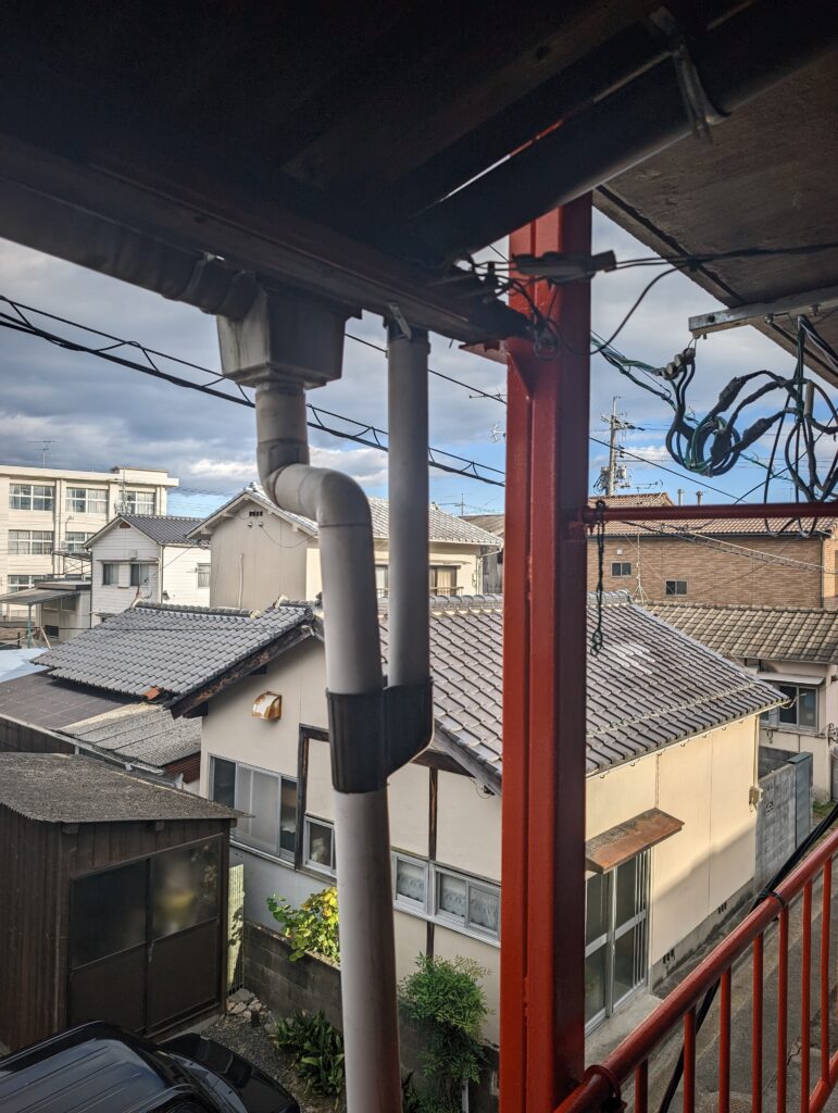 大雨時チェックするとキワの部分から水が下の階へ落ちるので結構大ごとにwこれそのままだと雨降った時に洗濯干したり井戸端会議出来ない(想定)ので改善していく😤