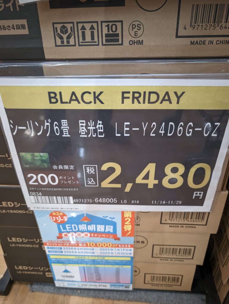 そんなこんなでアパートの1期工事の片付けもいよいよ最終工程の掃除と雑用。まずは別日に洗面所など小型の照明購入。近くのカインズブラックフライデーやーばっwOHM製で6畳2480円で200ポイント戻って来るじゃん!8畳3580円、12畳4980円でどれも200ポイント戻って来るの?しかもこの間の広島LEDキャンペーン入れたらくっそお得☺!ナゼ前回僕はやってしまったんだ。。。まだの人はこちらから!まもなく終了ですよ。