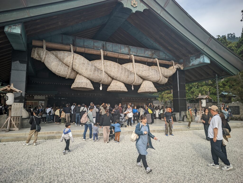 向かった先は出雲大社😤神在月の祭りだけあって人の流れ大杉問題w19社、八百萬神のお宿に手を合わせて旅館業成功するように祈願してきました、ちゃんと奮発して545円入れました😤成功しか見えない(盲目)