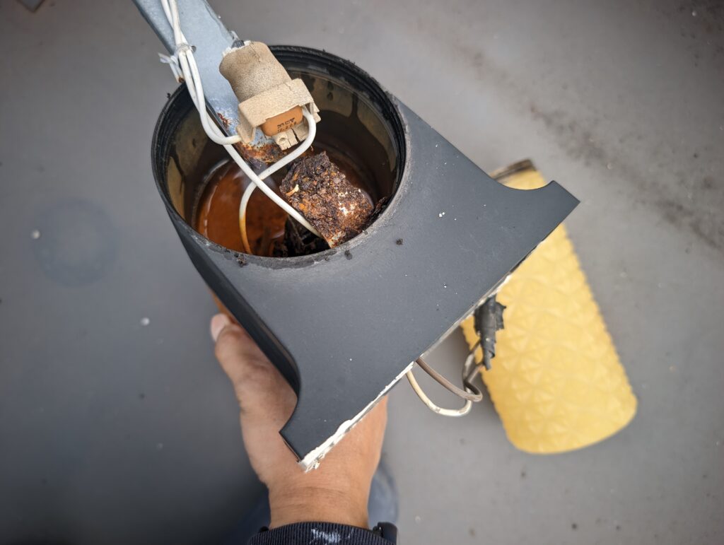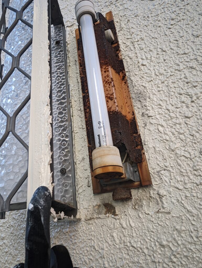 外灯2カ所、こちら完全にサビサビ。1カ所は水没と言うw