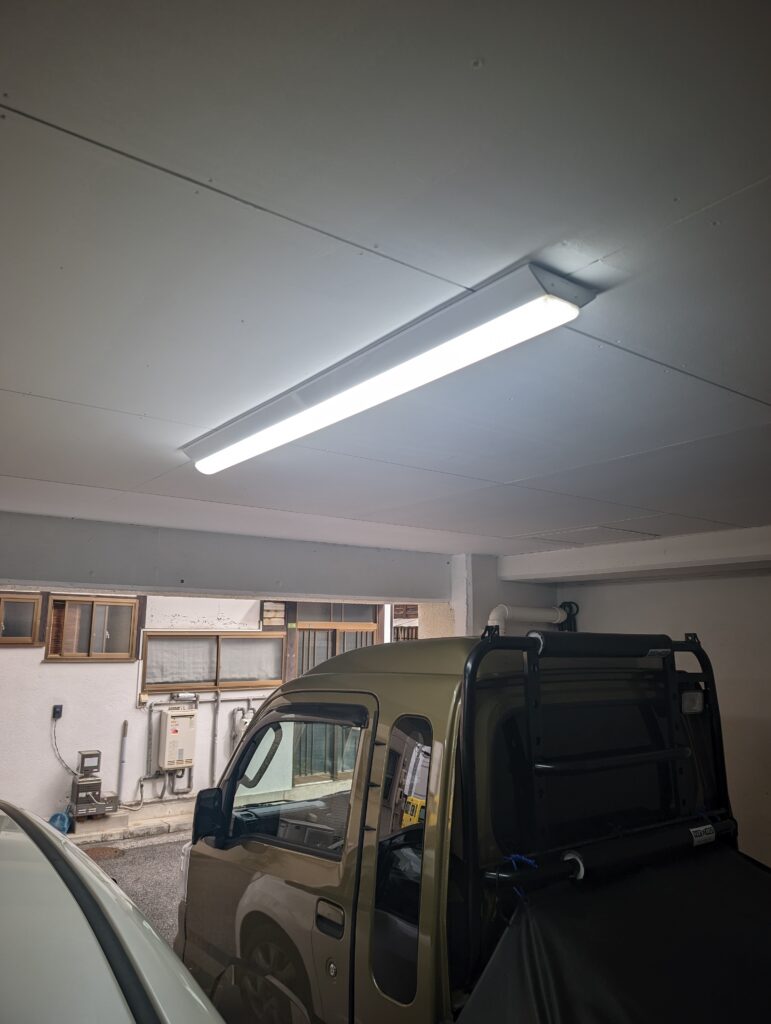 引き続き竹屋RCにて。予算カツカツというほどではないですが完成後ベッド買ったり備品やらが思った以上にかかるので少しでも浮かせるべく色々やりだします。まずはガレージ2カ所の蛍光灯をLED化。