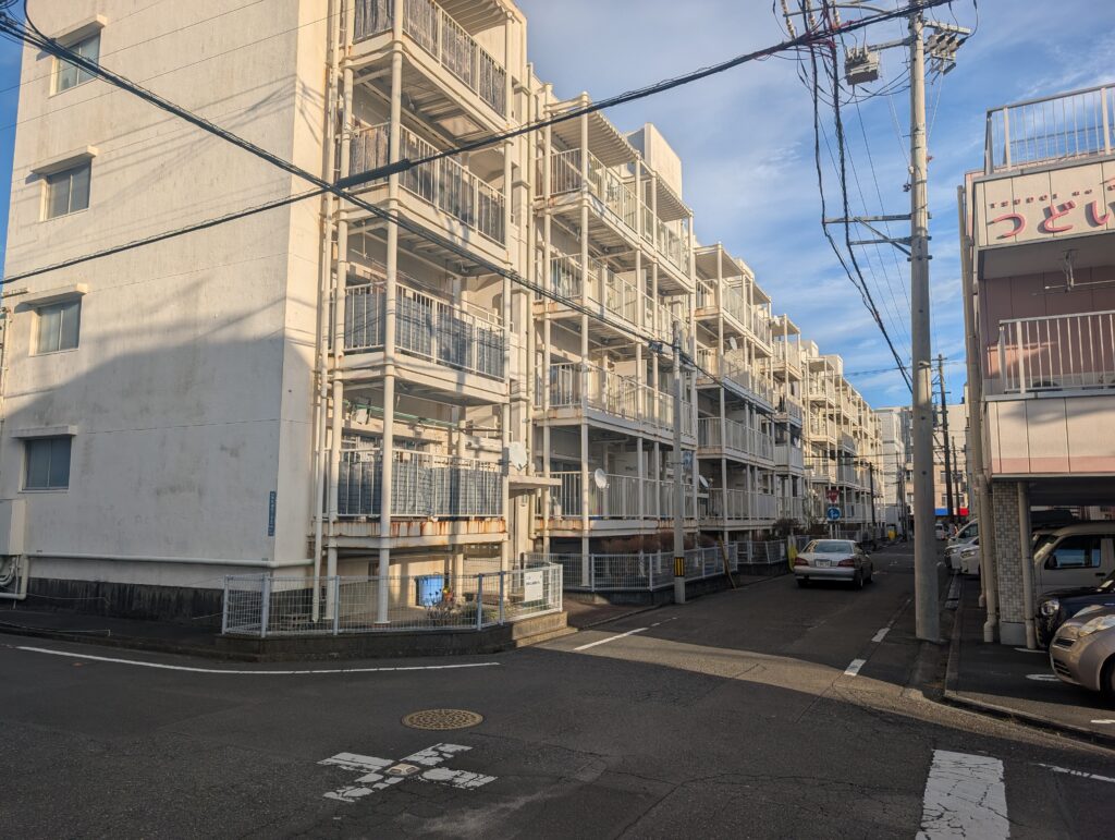 後にして向かった先は最古のRC物件見学。築77年の4棟並び。4人が4人多種多様の意見で面白いw基礎風化もないし適切修繕してればきちんとこれだけ持つという証拠。銀行は耐用年数延ばしてほしい😤