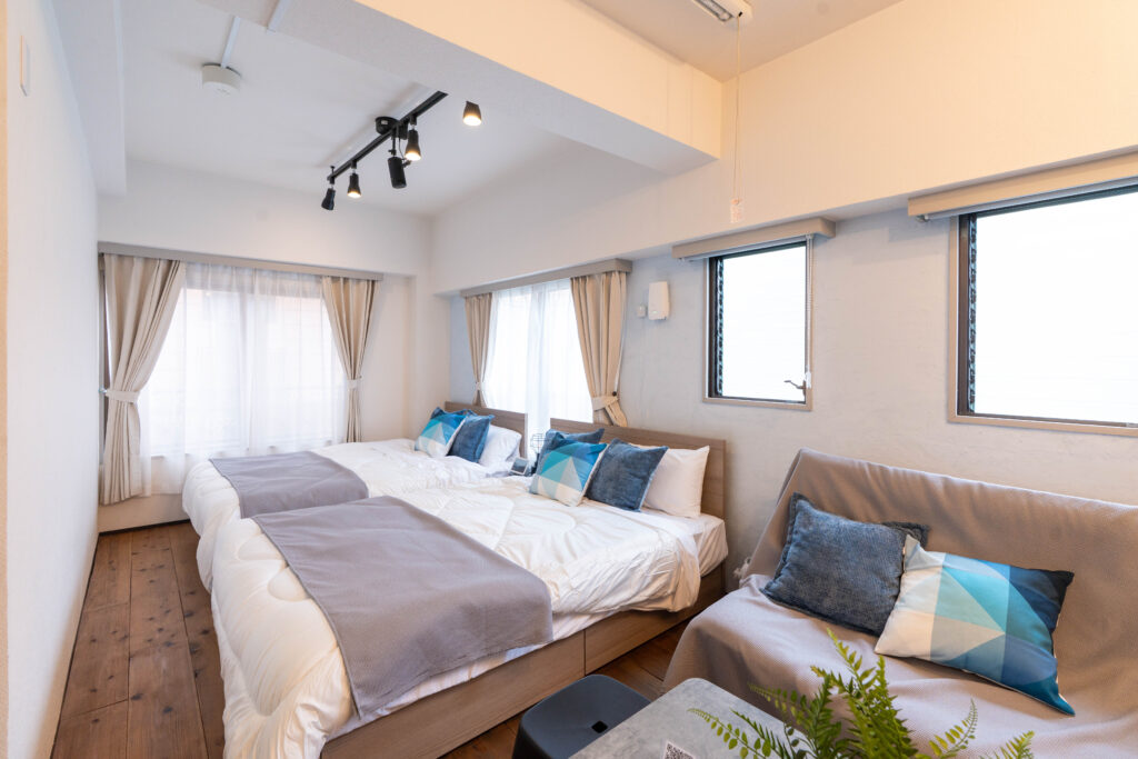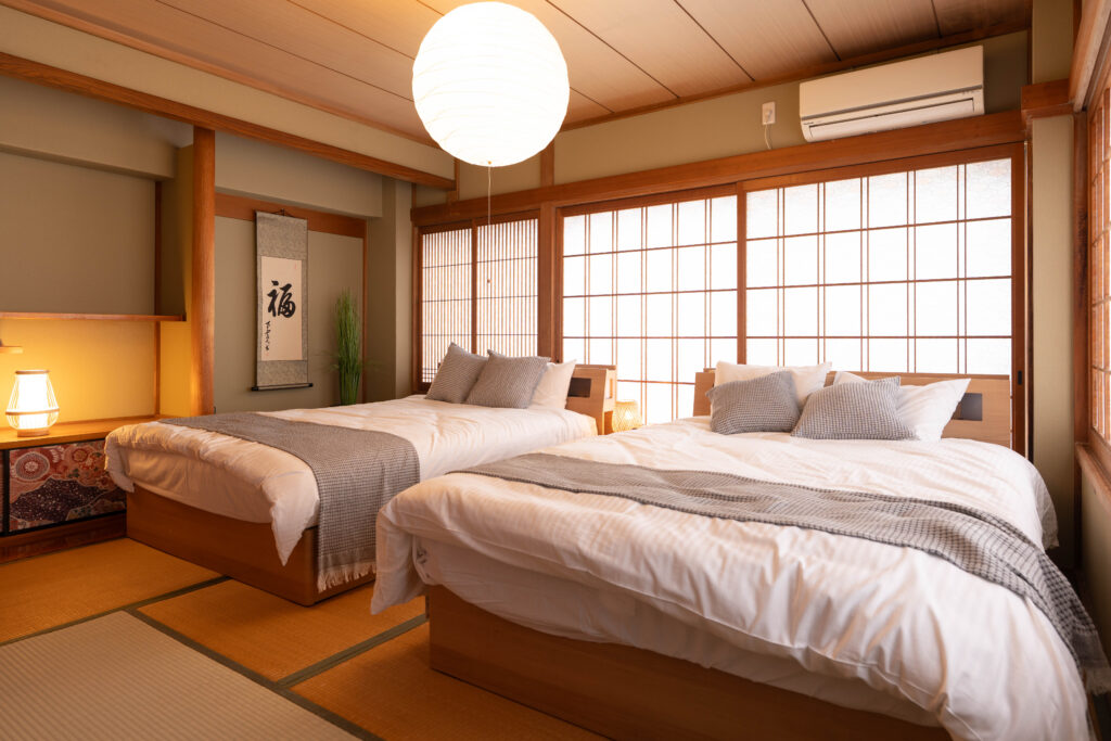 【2F】MOMIJI:5名宿泊、【3F】SAKURA:10名宿泊。平和記念公園まで徒歩21分、中区繁華街徒歩13分