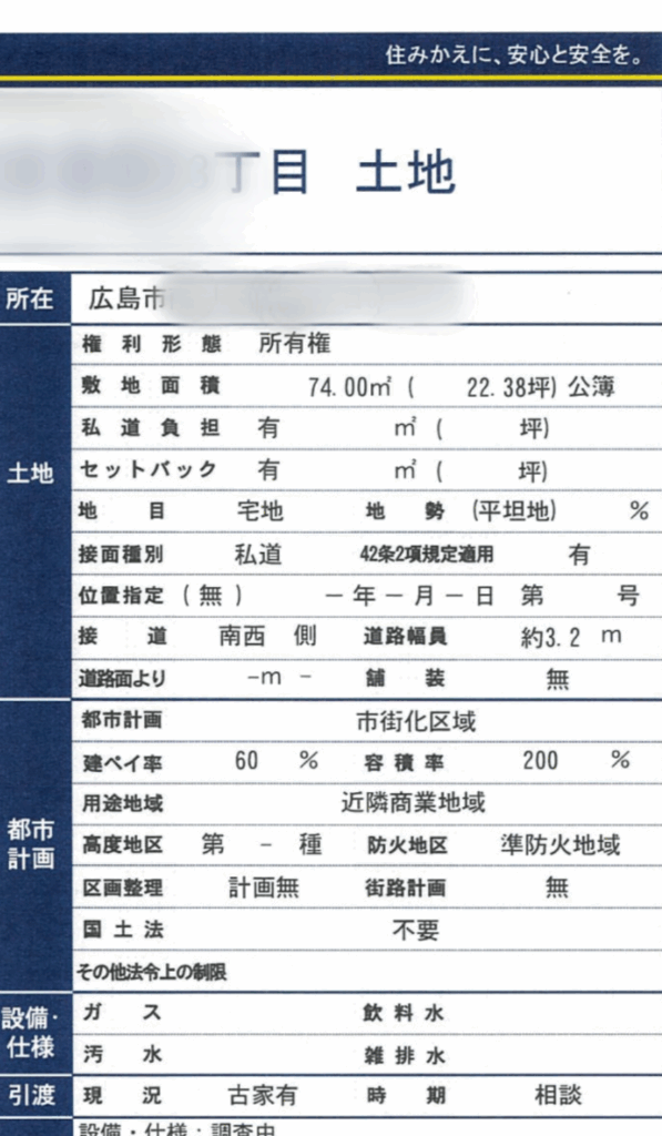 こちら平屋で2K。場所は市内某所の駅徒歩10分。まだ住まわれているそうで予定合わせて内覧するらしい。これベッド置いてもダブル2台とソファベッド1台がギリかもなあ。。。目の前の道路2項道路?あれ旅館業NGかも🥺転貸がいいかなあ