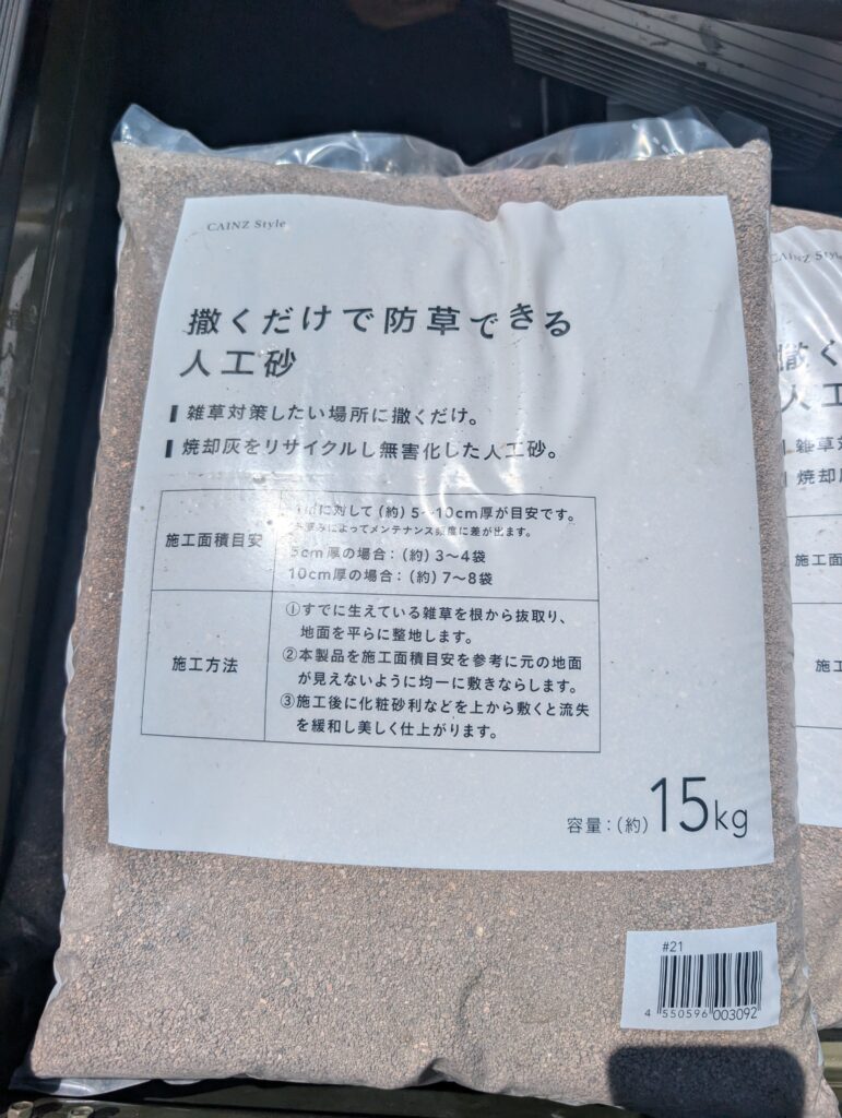 リフォーム&リノベこれから草抜きシーズン到来です🥺先週ヘッジトリマー&草抜きで綺麗になった空き家の庭一部にカインズの「撒くだけで防草できる人工砂」を購入したので撒きに。今大人気で全然商品がなく取り寄せ、電話貰ってその日の午前中に別途追加で買おうと思ったら「完売」ですとwそれだけ効果が凄いんだろう、楽しみです。