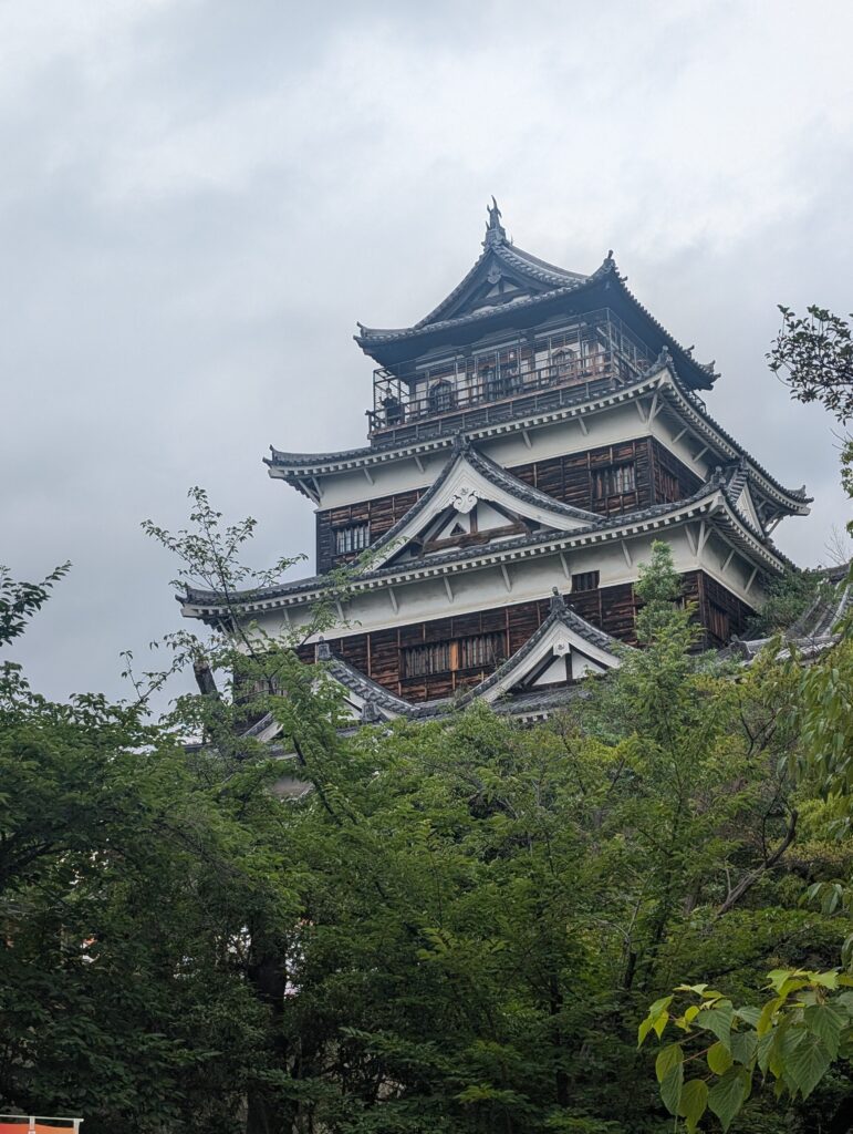 まあそれは置いといてw実は広島城の天守閣は、老朽化と耐震性の問題から、2026年3月22日をもって閉館(閉城)することが決定したんですよね。その後は取り壊して木造建築で再生するとか。しばらく見れなくなるとみんなで見学へ。曇ってたおかげでクソ暑くはないけど蒸した感じで梅雨どこいった感満載でしたw