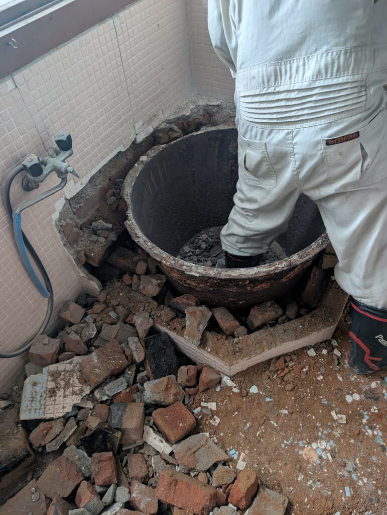延々と3人で解体。DIYやってて思う、タオルがアンモニア臭いこの夏がまたやってきた🥺とりあえず3つ解体、1つ穴で使えず。