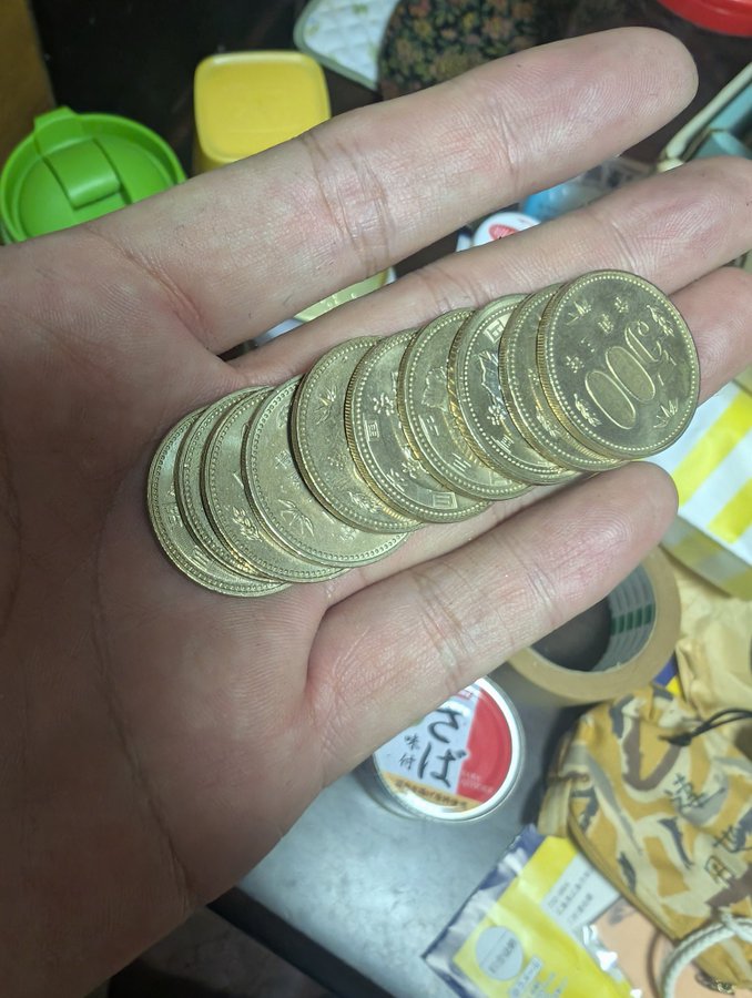 来たっ!!!500円玉貯金や!ジャラジャラ言うとるでー😤中身を確認すると5000円入ってた!!!なお駐車場がなくコインパーキング停めると平日MAX1000円土日祝日倍かかる模様🥺(ここで1つ売主と揉めないために【必ず】残置物の所有権放棄の覚書を一筆貰いましょう、そうしないと高額商品出ててきたら揉めます。)