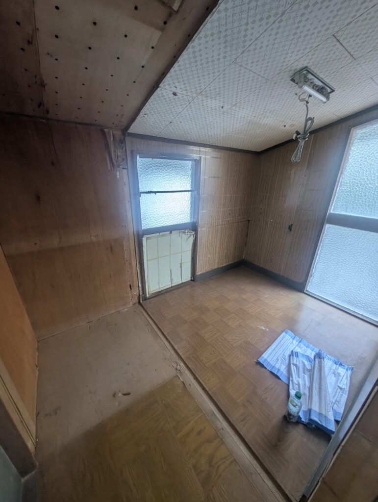 入居者さんが頑張って直してる平田。僕は色々動いててまだまだ出番は先かと思いきや、そろそろ内部解体お願いしますと。