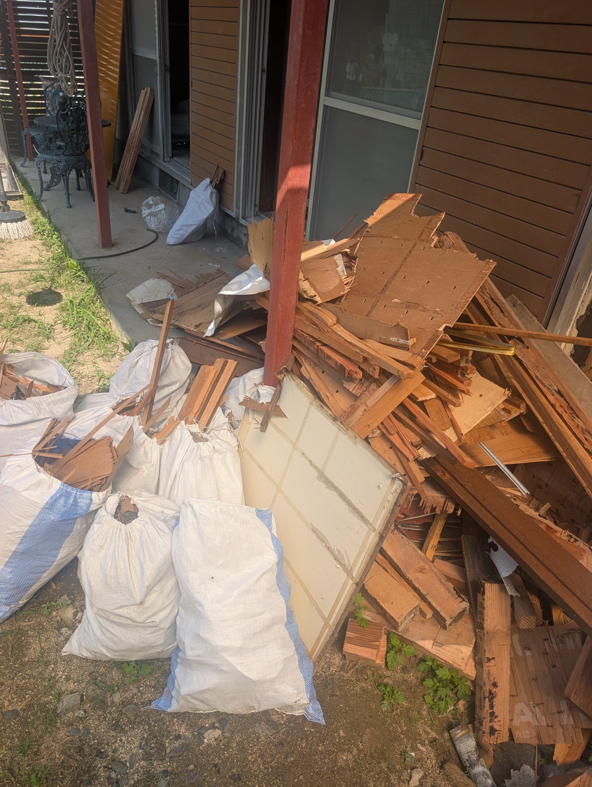 で、話を戻してと。。。採光部のガラス戸はめ殺しでしかもこれシングルガラス。冬は寒いので2重化する&もう1つのはめ殺しは夏にスポットクーラーを取り付ける&換気で窓が欲しいと。そういや4、5年くらい前に解体品の窓倉庫に放ってたないつか使おうと思ってと思い出し持ってくる。