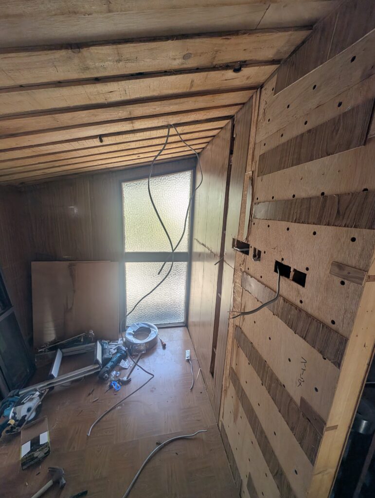 まあ窓の方は後回しにして電気工事するのに配線を仕込む為どうせ壁上張りするからと配線の通り道を加工。