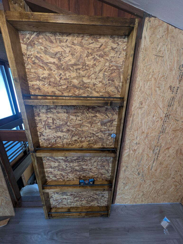 と言う訳でどうにか完成!扉閉めてればまずマガジンラックに見えます。隙間をギリギリ加工でクリアランス取るのにくっそ時間かかったw左壁はやりたい事があるとの事でそのまま。