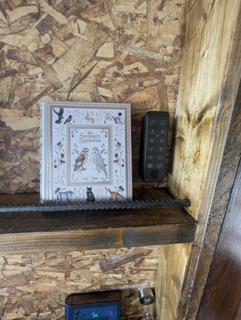 2×4材と鍵が干渉する🥺彫り込んだんだけどうーん、、、やり直しっ!右側面だけ1×4材にする!また穴開け直してステイン塗るのかよ。。。とりあえず作成してドアに取り付け。