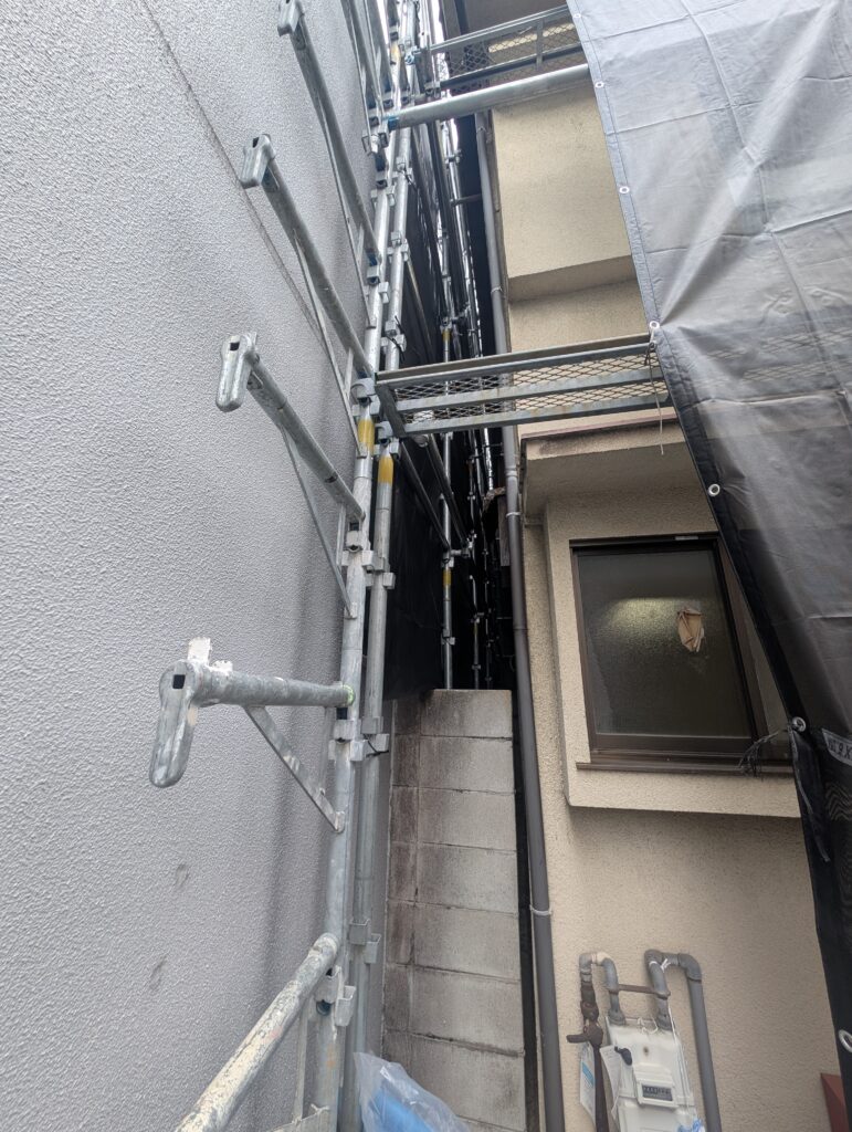 ちょっともう足場組んじゃってアレですがこの間50cm程度のスペースは横の会社さんのもので。売主さんも仲良くやらせてもらってて越境部分も古い家の話だからといいよって話になってるという流れから覚書でいけると思ってたのですが。