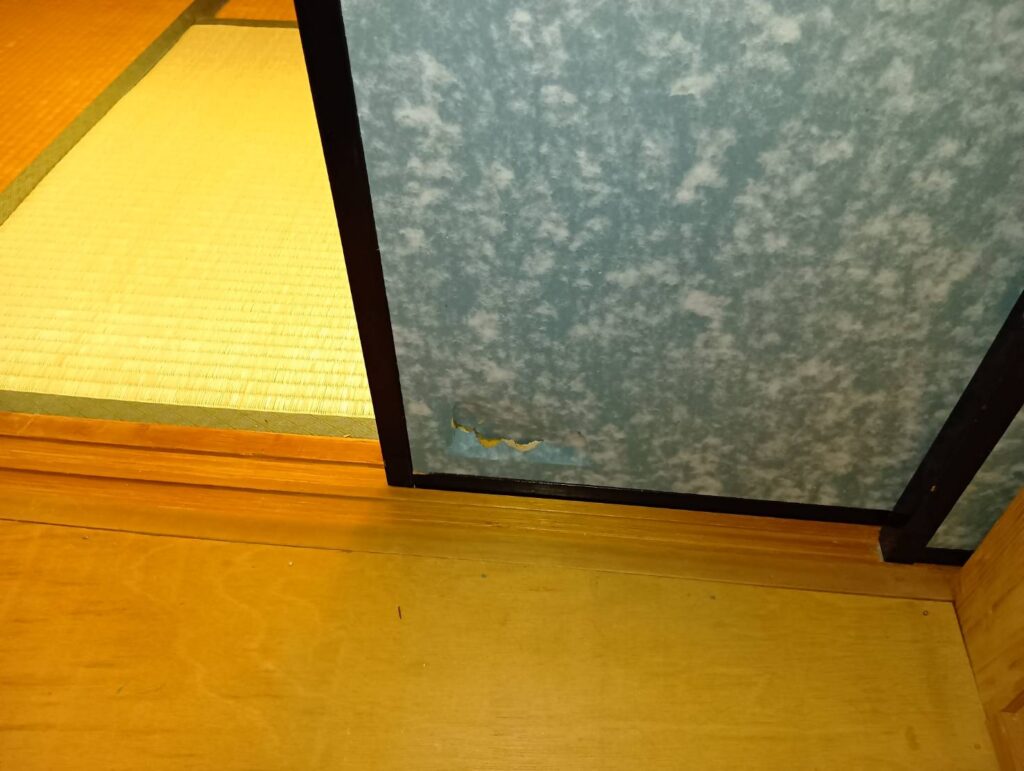 それは置いておいて、トラブルといえばそんなにはないのですがよく物を壊す🥺これは旅の恥はかき捨てとばかりはしゃいだ結果なのかもですが。例えばうちの宿4F襖。