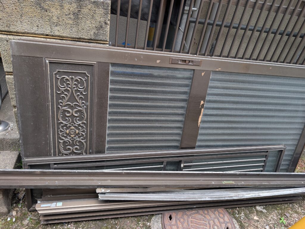 解体したドア。貰ってアルミとして売りに行こうと思いましたがガラス外したり色々やっても恐らく3000円程度にしかならないと言われ辞めましたw