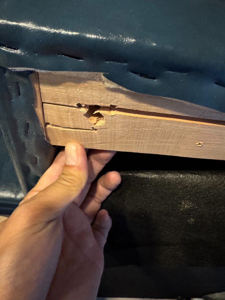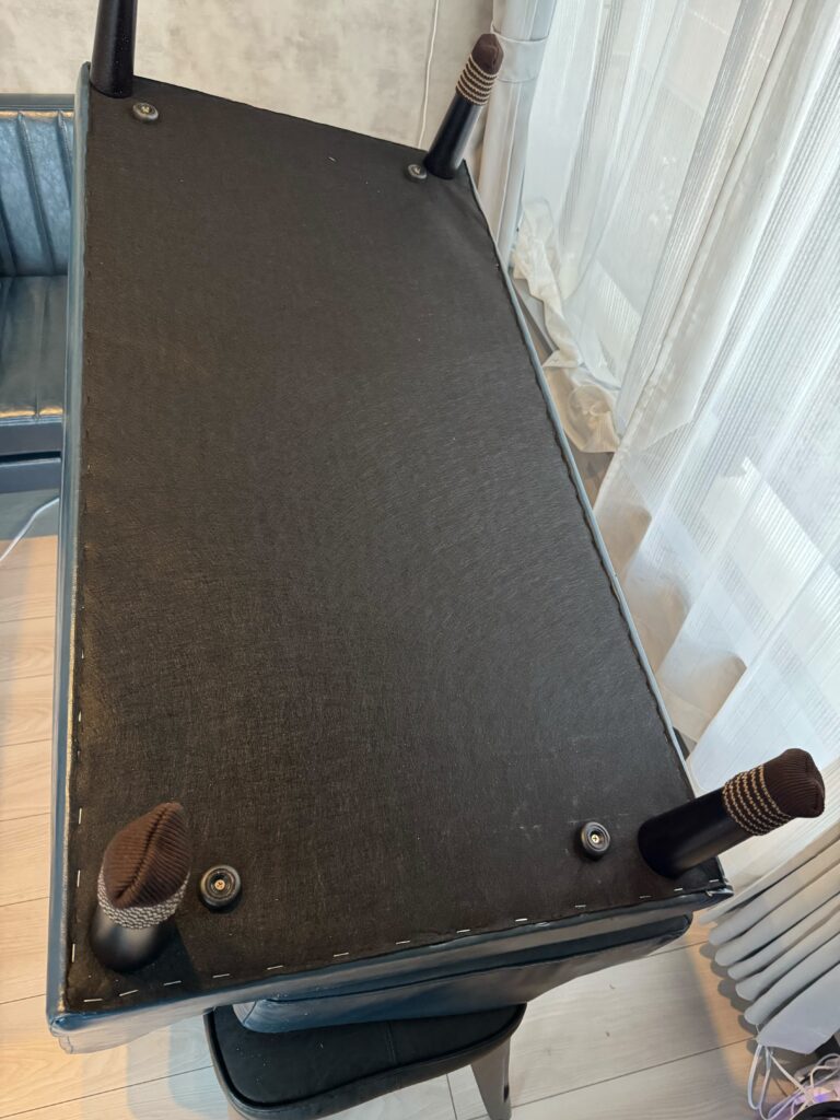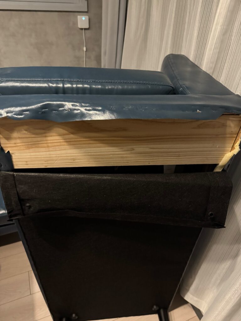 西蟹屋やって、竹屋旅籠清掃チェック行って〜合間に物件回って〜とやってると時間が足りませんw竹屋旅籠の清掃終了10分前ソファの足がぐらつく報告からこれ。見事下地の板割れてるというね。。。誰が割ったのかデブが座って割ったのかもだし。