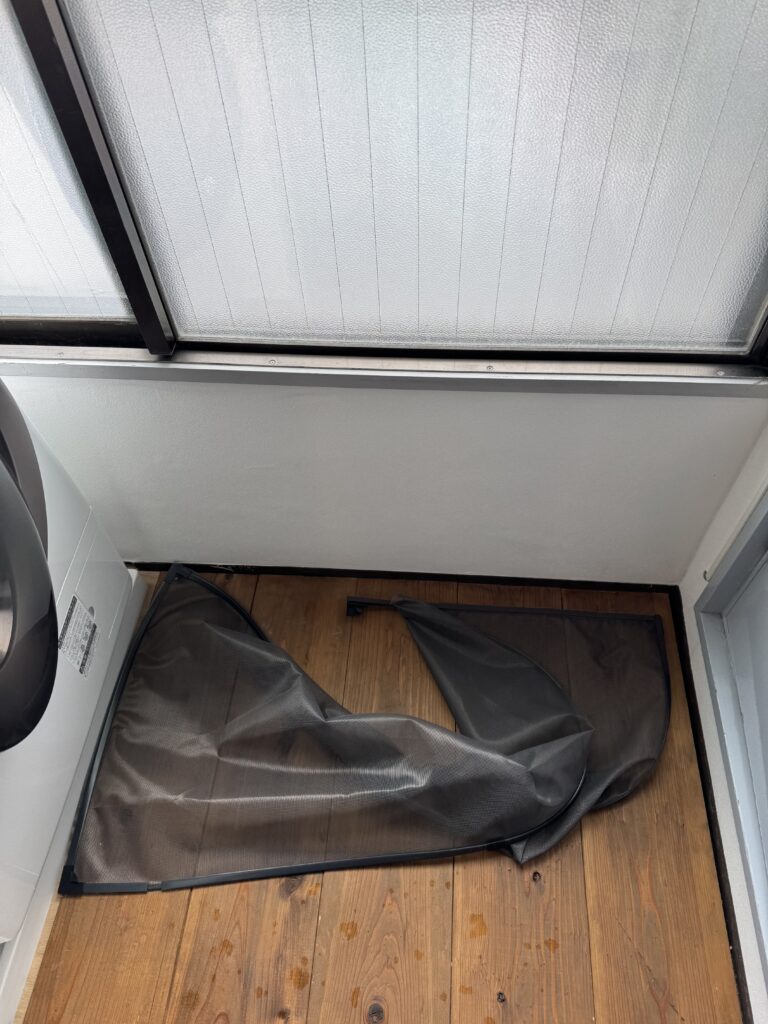 マグネット式の網戸、割かれてます😡