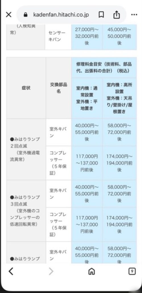 室内基盤かコンプレッサーで4万から13万って幅広いなおい!修理をお願い高値になりそうなら報告頂き新品交換。余裕持って20畳(実際14畳ほど)なので15万程度は出費覚悟か。。。🥺