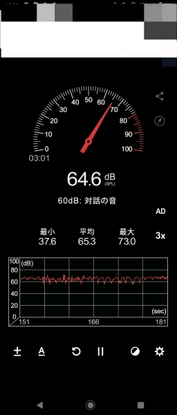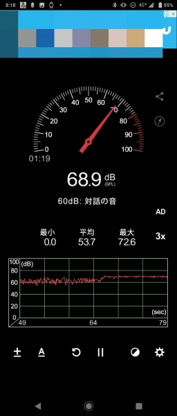雨が降った時のことを書いてませんでしたので追加しますと塗らない時に68デジベル。